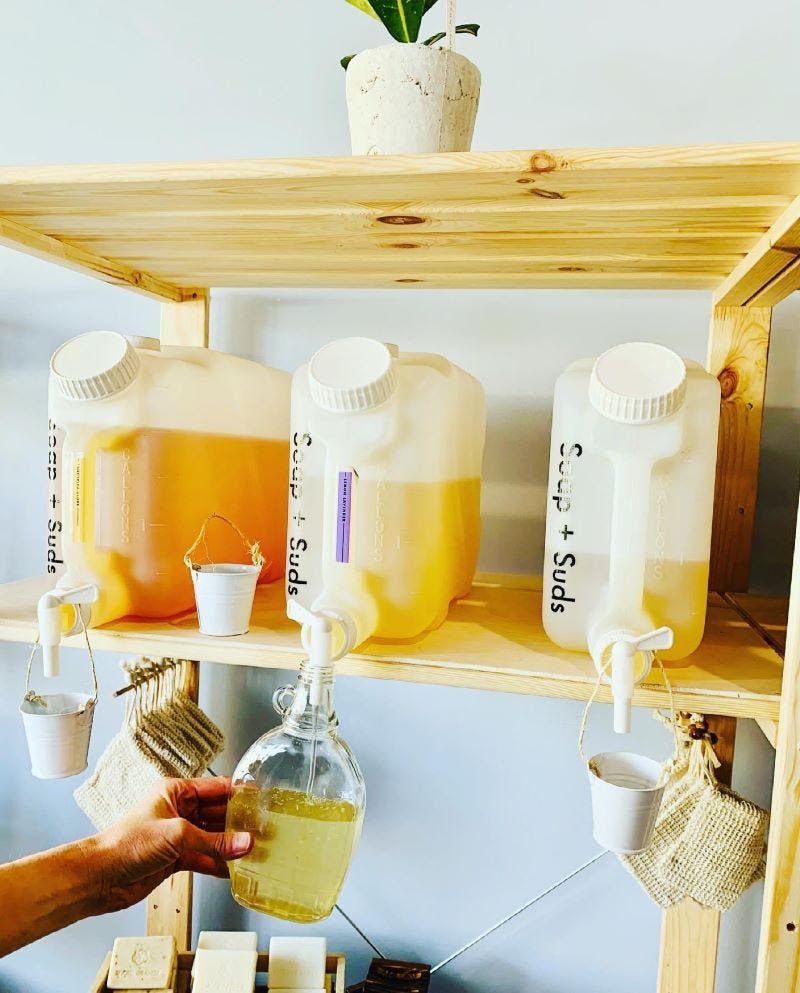 Amy of Soap & Supply: I think what’s been a little surprising to me is the amount of time and energy it takes on the consumer’s part to do this and care for their containers. There’s a sanitation aspect to this. When you go to the store you get your gallon of laundry soap and you use it, and maybe you rinse it out and maybe you don’t, and maybe you throw it away and maybe you throw it in the recycling bin; there’s not a lot of thought on the customer’s part about that container. So when you really start thinking about reusing that container, you have to think about how to care for it. And that’s been an element of education that’s been challenging for me to teach. Especially because we have plant-based biodegradable products with low preservatives. Soap can go bad. That’s been the most surprising thing; I think because I came from the food world, I was always thinking about sanitation.